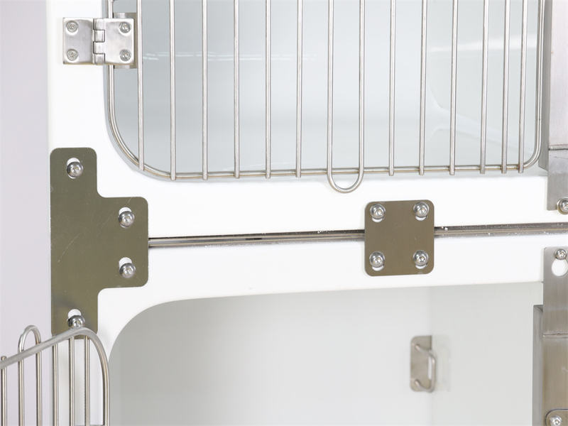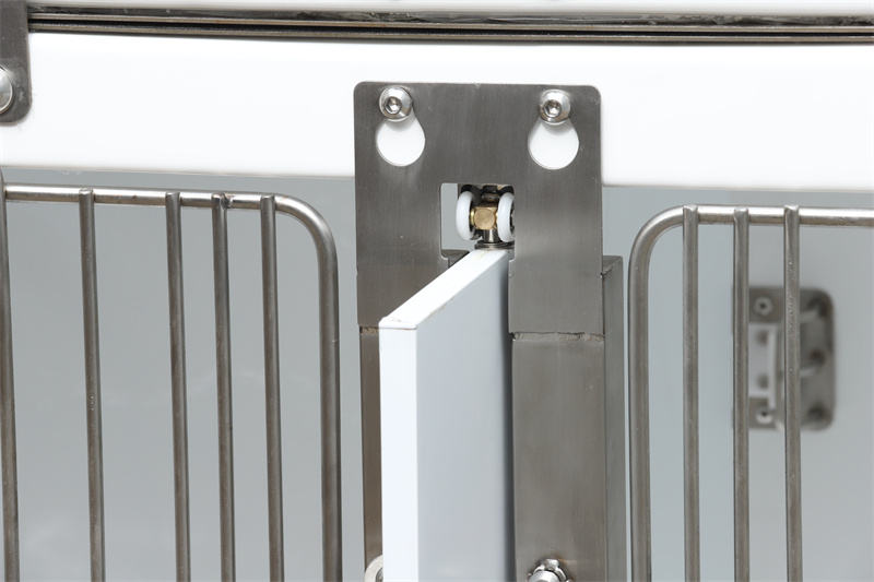 Vnaprej nameščene pršilne šobe in cevi, drenažni sistem s filtrom in električne vtičnice ga spremenijo iz navadne kletke v večnamensko delovno postajo. Električno opremo, kot so aparati za anestezijo, koncentratorji kisika in grelne blazine, je mogoče priključiti v vtičnice in obesiti na osrednjo prečko vrat. Vhodna vrata veterinarske vodotesne modularne pasje kletke iz steklenih vlaken omogočajo namestitev senčnikov prek zavojev v obliki črke U, ki blokirajo sončno svetlobo in hkrati služijo kot vetrna ovira.